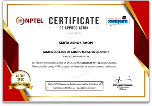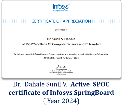 Achievement: PhD /Active SPOC Infosys Spring Board