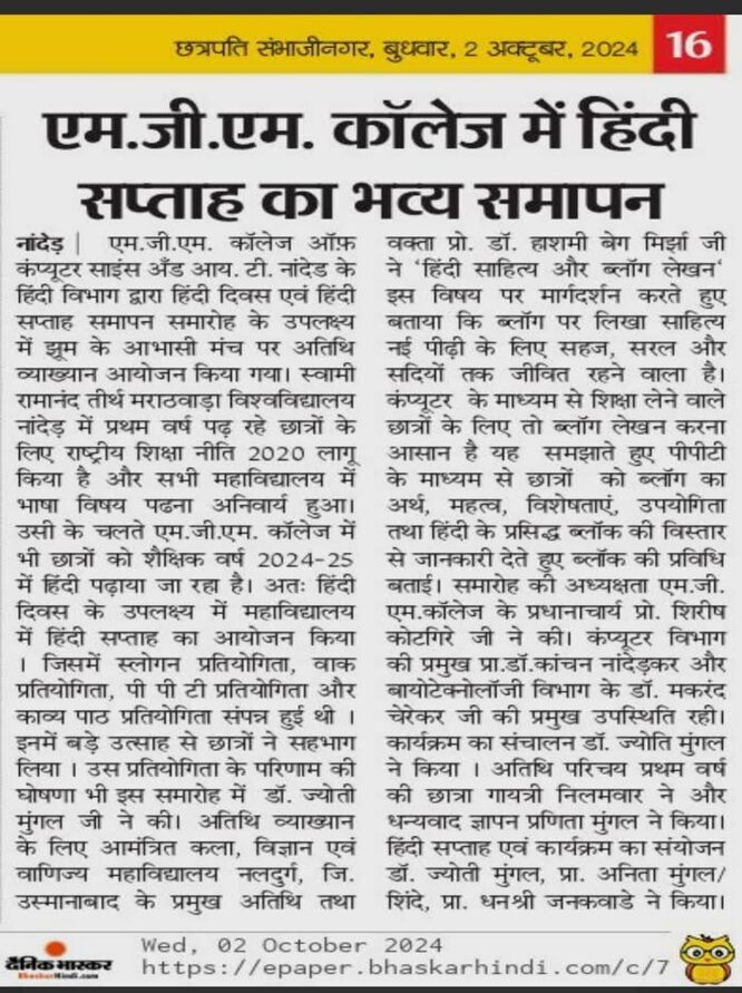 • Special classic books collection available in Marathi, Hindi & English languages for students & staff.